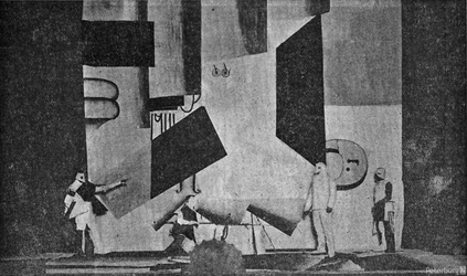 [Der Maler und] Komponist Michail Wassiljewitsch Matjuschin und sein Bühnenbildner und Lichtregisseur Kasimir Malewitsch hatten alle konventionellen „Dekorationen“ negiert. Ihre Inszenierung wurde vom konservativen Publikum ausgebuht, das kühne Gesamtkunstwerk von der Kritik verrissen, die Protagonisten als Kunst-Zerstörer beschimpft.