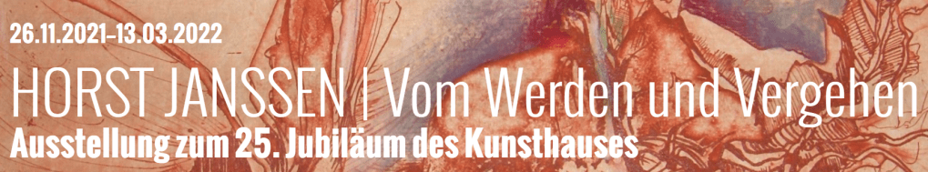 Quelle dieser Einführung und alle Informationen zu Ausstellung im Kunsthaus: Horst Janssen. Für noch mehr Informationen zum Künstler sei auf den sehr gut geschriebenen Wikipedia Eintrag über Horst Janssen verwiesen. Und dann gibt es noch das Horst Janssen Museum in Oldenburg, dass dem Werk des Künstlers gewidmet ist. Hier der Link: Horst Janssen Museum