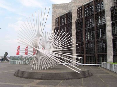 Diese „Essenz“ kann sowohl in einer kompakten Steinfigur, als auch in durch gegeneinander verkantete flächige Elemente gebildeten Eisenskulpturen und ebenso in rein linear aufgefaßten, raumdurchlässigen Skulpturen zum Ausdruck kommen. Das Prinzip, durch Beschränkung auf Wesentliches die gewollte Aussage zu erreichen, bleibt das gleiche.“