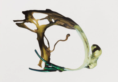 Buchstabe ‚D‘, besiedelt von einem Fluss, einem Kolibrischwanz und einem Krötengesicht, Holobiont, gefunden während der Recherche für The Book of the Ten Thousand Things von La Intermundial Holobiente, 2021, Foto: Claudia Fontes und Bernard G. Mills, Courtesy der Fluss, der Kolibri, die Kröte, das Sonnenlicht und die Kameralinse