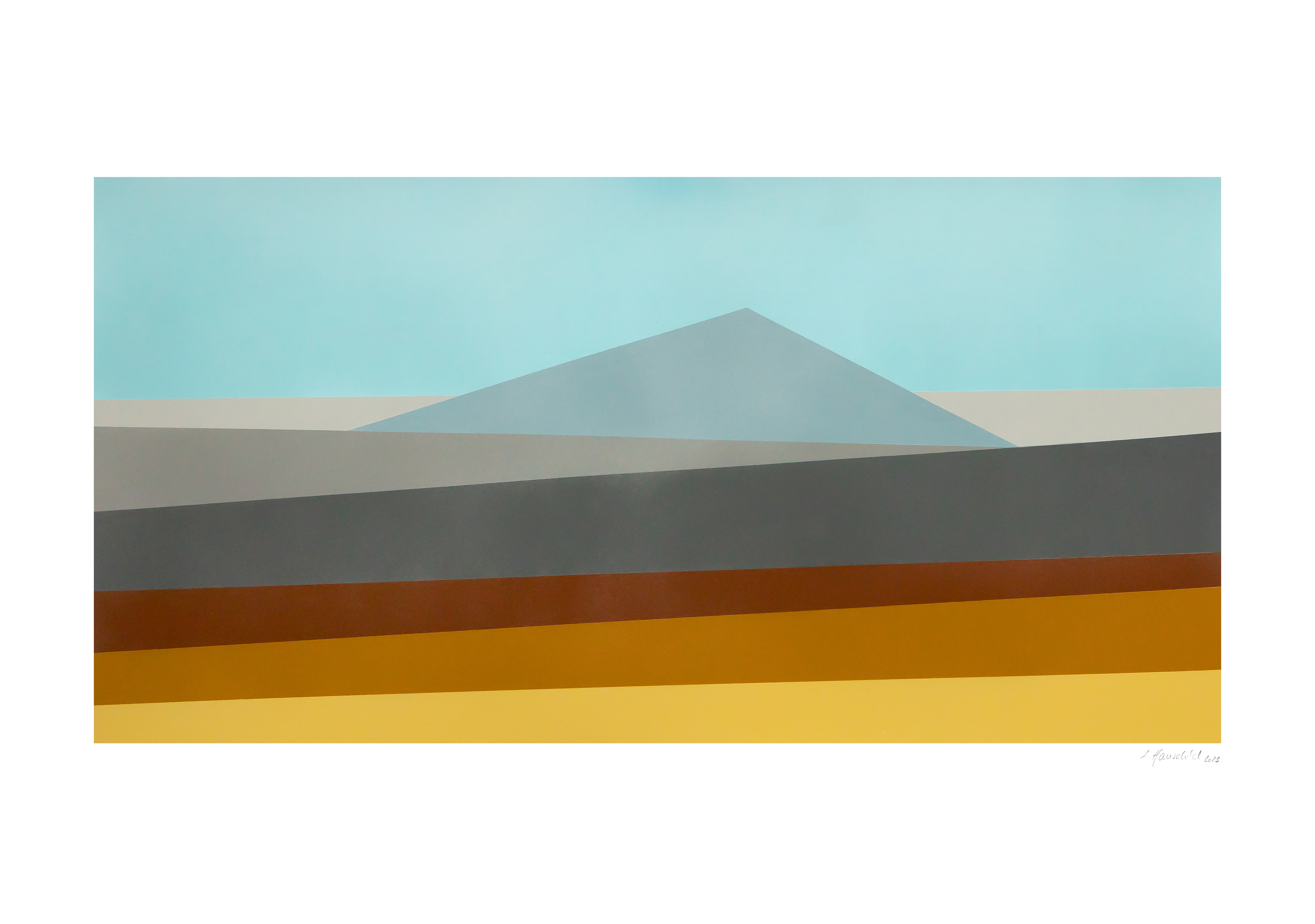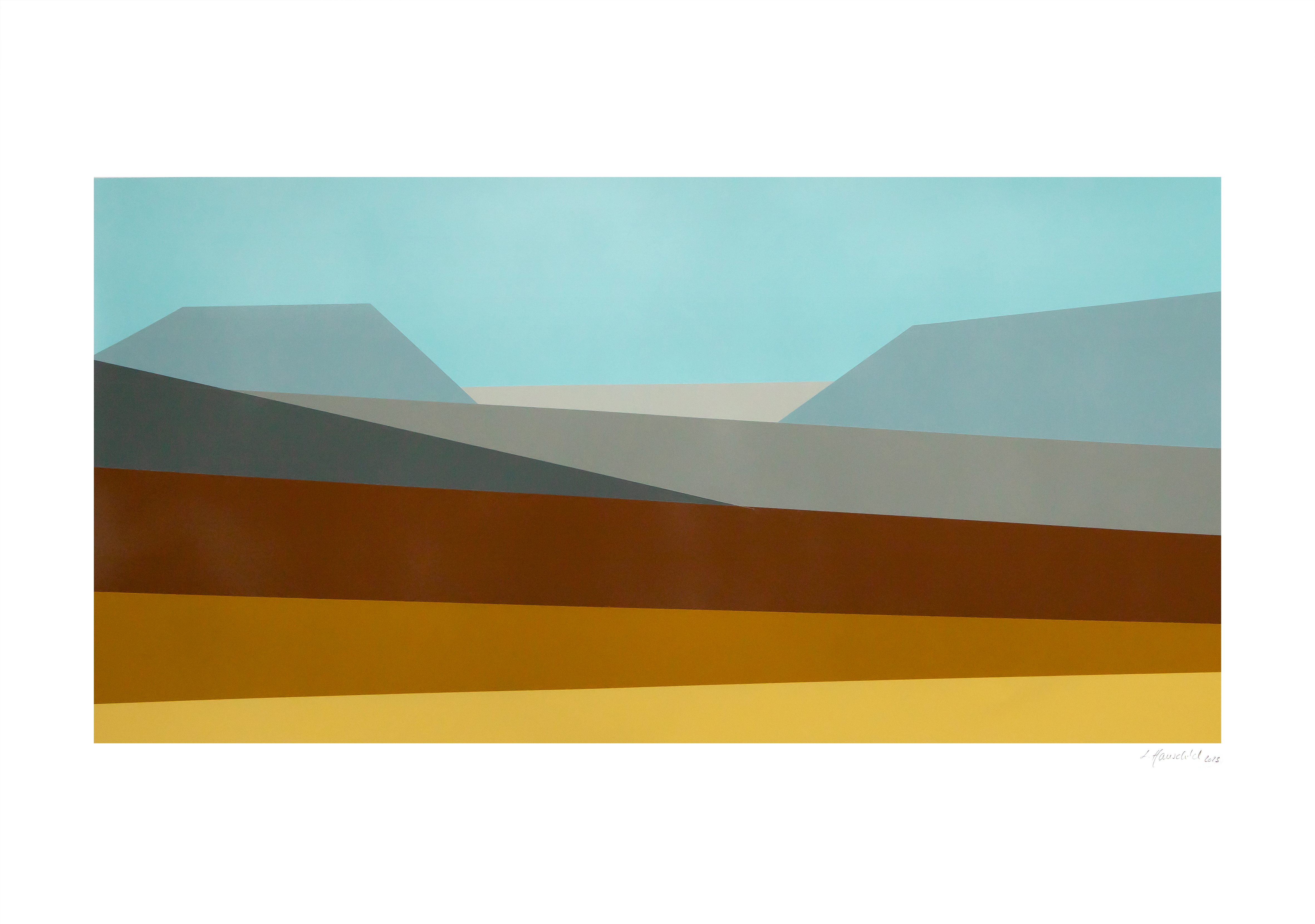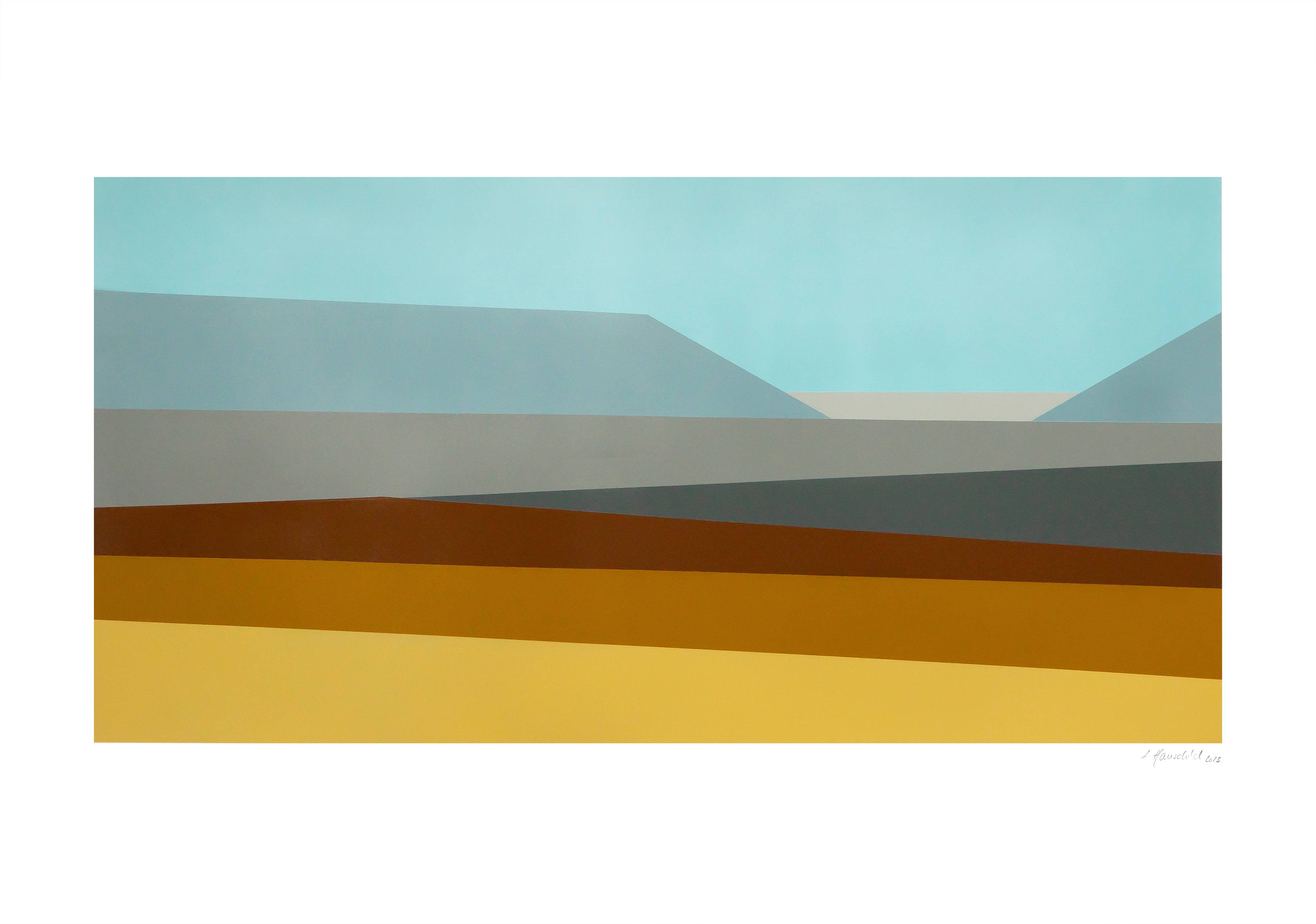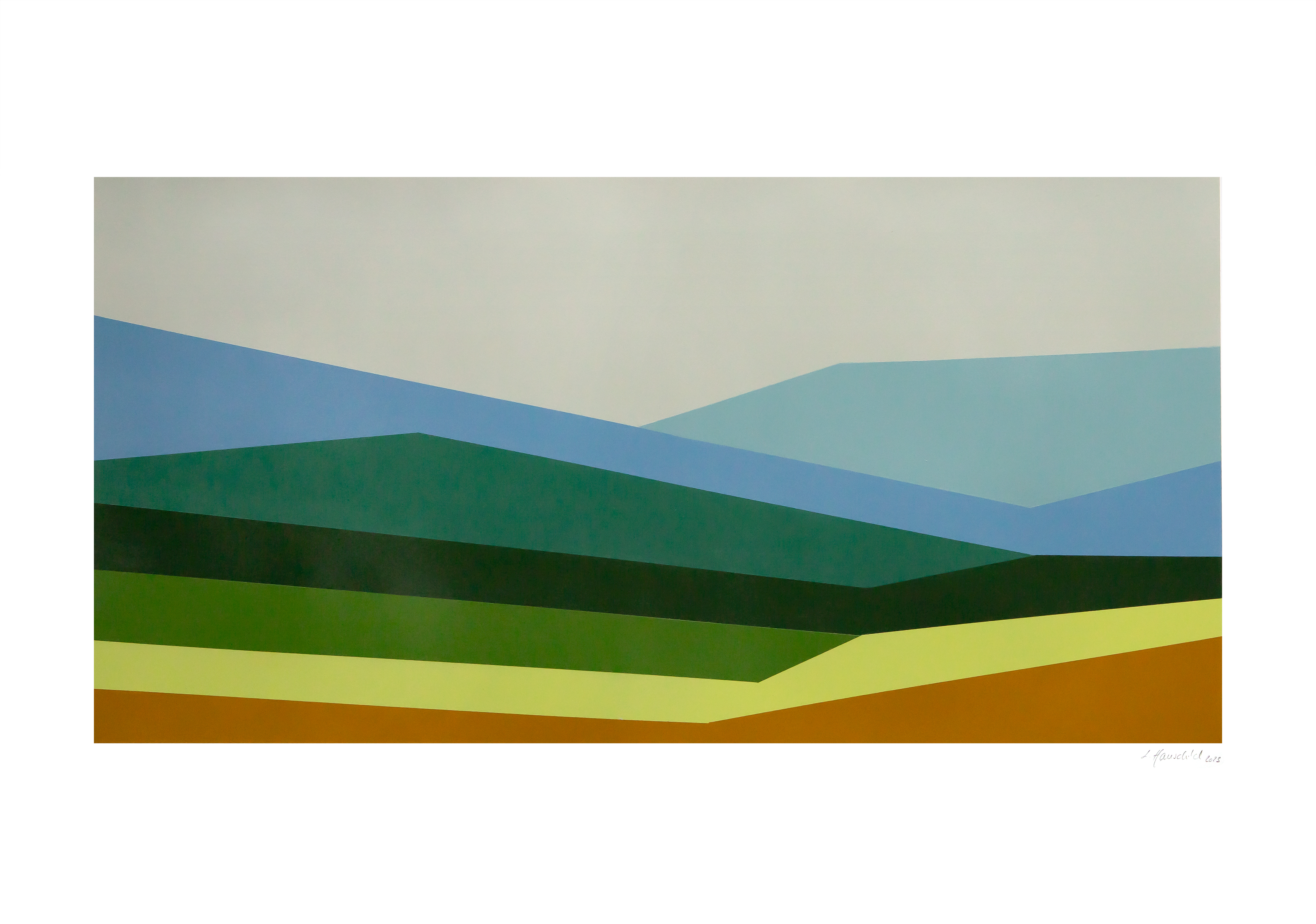 Weg von der unbedingten Konkretheit der früheren Werke, wird in diesen Bildern etwas dargestellt – eine – zugegebenermaßen sehr abstrakte – Landschaft und weg von dem Schwarz-Weiß hin zu abgestuften Farben, um dem Titel einer Gemeinschaftsausstellung – ebenfalls 2023 in Korntal – „Aufruhr der Farben“ gerecht zu werden.